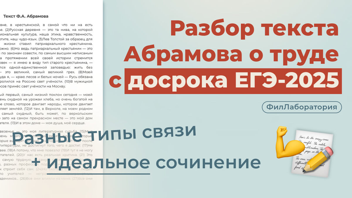 Это особенный выпуск, посвященный реальному тексту с досрочного ЕГЭ-2025 по русскому языку🔥 Разбираем текст Ф.А. Абрамова — тот самый, что уже попался на экзамене! 📌 Покажем: ✅ как формулировать авторскую позицию, ✅ как выстраивать разные типы связи (дополнение, причинно-следственную и др.), ✅ как написать идеальное сочинение. ✅ Плюс: будет готовая презентация для уроков — скачивайте и разбирайте с учениками! Как забрать презентацию: 1️⃣ Смотрите видео 2️⃣ Переходите в чат-бот из описания к видео 3️⃣ Забирайте готовую презентацию Хотите больше полезных материалов? На нашем сайте вы можете приобрести: 👉 Готовое пособие по критерию К2 👉 Сборник сочинений на 22 балла Смотреть видео: 🔹 YouTube 🔹 ВК #ФилЛаборатория