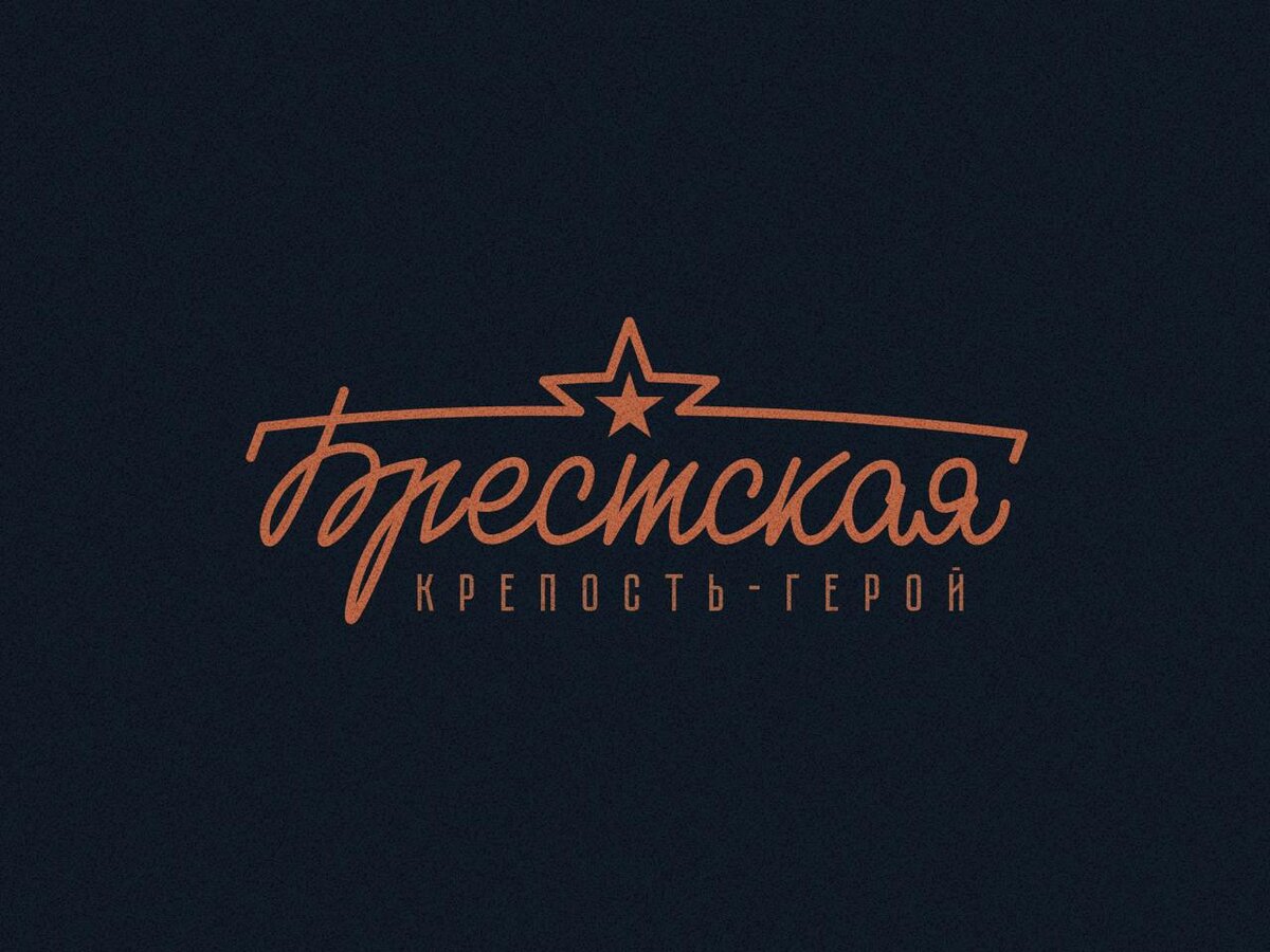 Новая леттеринг надпись. На этот раз крепость-герой Брест. В шапке буквы Б образ звезды с арки в мемориальном комплексе.