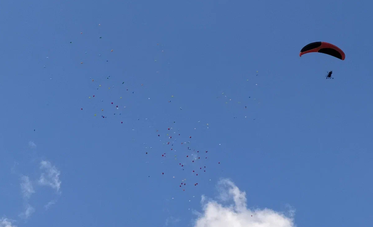 Пусть в качестве заставки к публикации будет вот это фото, где мужчина летает на дельтаплане и разбрасывает воздушные шарики: