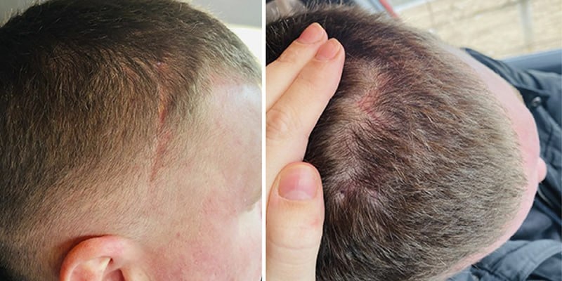 Мелкооскольчатый вколоченный перелом лобной кости получил наш недавний пациент, просто поскользнувшись и упав с высоты собственного роста. Самостоятельное обращение в нейрохирургию одной из Подмосковных больниц, а потом перевод в отделение челюстно-лицевой хирургии Пушкинской клинической больницы имени профессора Розанова В.Н. «При поступлении выраженная деформация конфигурации лица за счет отека мягких тканей. В лобной области - вдавленный перелом, в области правого века при пальпации отмечалось костное образование. Это был отломок верхней стенки глазницы. Во-первых, ровно срастись раздробленная кость не смогла бы, и это в той или иной степени доставляло бы пациенту постоянный дискомфорт. Во-вторых, это довольно выраженный косметический дефект лица. Поэтому решено было сразу все исправить», - рассказывает заведующий отделением челюстно-лицевой хирургии Алексей Алексеевич Бунев. Алексей Алексеевич, проводивший операцию с ординатором Андреем Рубеновичем Мусиняном, решил сделать не класс