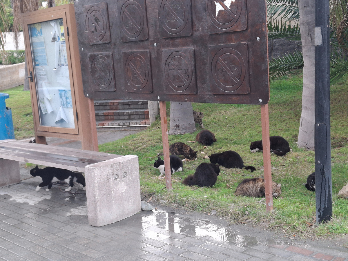 На Кипре очень много кошек. Их тут кормят. Наш отель далеко от центра города (центр - это там, где высотки). Сладкая парочка :) Не сезон. После дождя некоторые дорожки в земле. Кошки не голодные, им просто не хватает внимания и ласки. Туристов мало в феврале. Поэтому кошки и бегут навстречу всем, кого увидят. Багира! :) Алоэ цветет, а сверху сидят кошки. Хороший тут февраль! :) Капская ромашка. Дошли до мостика. Дальше не пойдем. Уже вечер, дождик накрапывает. Вернемся сюда завтра. Поднялись в город и по улице пошли обратно. Высотный жилой и коммерческий комплекс Арарат. Вернулись к отелю уже под дождем. Закат в 17 часов. Вид из номера. Дерево выросло не на месте :) Вечером пошли в бассейн. Почти все время плавали одни. День пролетел. Продолжение следует... Начало Ереван. Перелет. Отель "Yerevan Place". Прогулка по городу Кипр. Части 1-7. Перелет. Пафос. Отель "Cap St Georges" и окрестности Ки