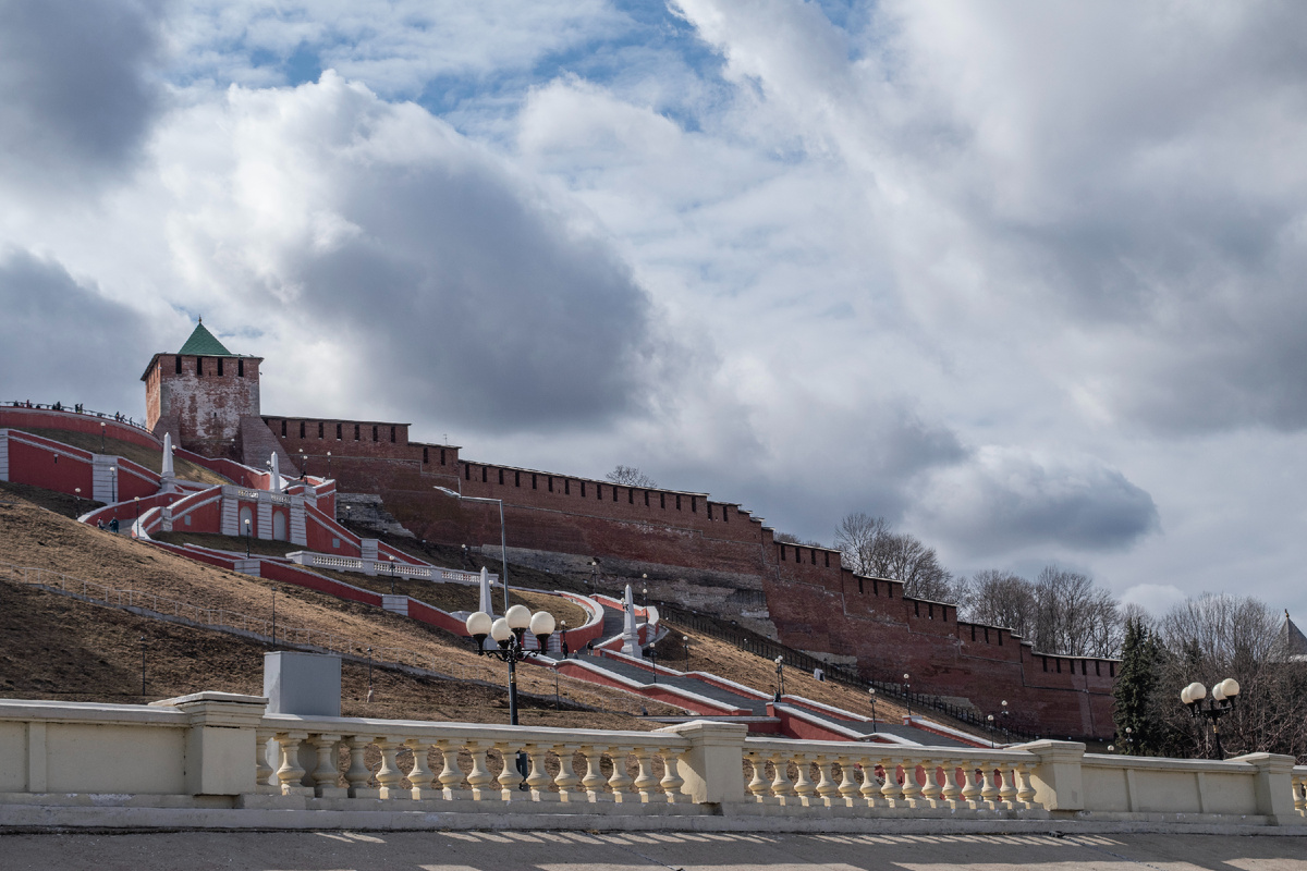 В прошлом выпуске я поделился впечатлениями от посещения Верхней и Нижней набережных и связывающих их Чкаловской лестницей. Обещав продолжить Нижегородским кремлём. Когда-то Нижний Новгород был восточной границей Руси-матушки. Которая фактически проходила по Волге. В тоже время большая река служила, как это теперь говорят: логистическим коридором. Что, конечно, способствовало развитию поселений располагавшихся на берегу. Не абы где, а в стратегически важных местах. В данном случае высокий берег служил естественной преградой. А слияние с Окой позволяло контролировать важную развилку. Но о Стрелке в следующий раз. Архитектурно Нижегородский Кремль не похож на Новгородский или Псковский. Более всего мне напомнил Тулу. При этом и внутренняя атмосфера несмотря на присутствие нескольких храмов и высокой звонницы не вызывает того ощущения закрытой обители, как в северных городах. Светскость Нижнего в значительной степени преобладает здесь. И от того административные здания вполне гармонируют