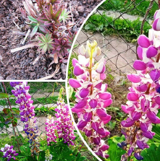 Цветы люпины многолетние могут расти даже в неблагоприятных условиях, наверное поэтому их и называют "волчьи цветы". Само слово "люпин"переводится с латыни как волк, хотя об этом мало кто задумывается. Люпин и люпин, и сразу мысленно представляю целые поля фиолетовых люпинов, в советское время их выращивали для корма животных. Сейчас люпин красивый декоративный цветок, селекционеры постарались повысить самооценку растению. Есть люпины изысканных расцветок, они обильно цветут и занимают центральное место в клумбе. Свои люпины, гибриды Рассела, я высадила по краю клумбы на придомовой территории. Крупные семена люпина не обязательно проращивать, достаточно поместить на 15 - 20 минут в розовый раствор марганцовки для обеззараживания. Если сомневаетесь, что взойдут, тогда прибегните к скарификации - протрите семена по наждачной бумаге. Всхожесть семян сохраняется 3 года, заделка при посеве 1,5 - 2 см, всходы появляются на 7 - 10 день. Хотя в фазе сеянцев люпины хорошо переносят пикировку