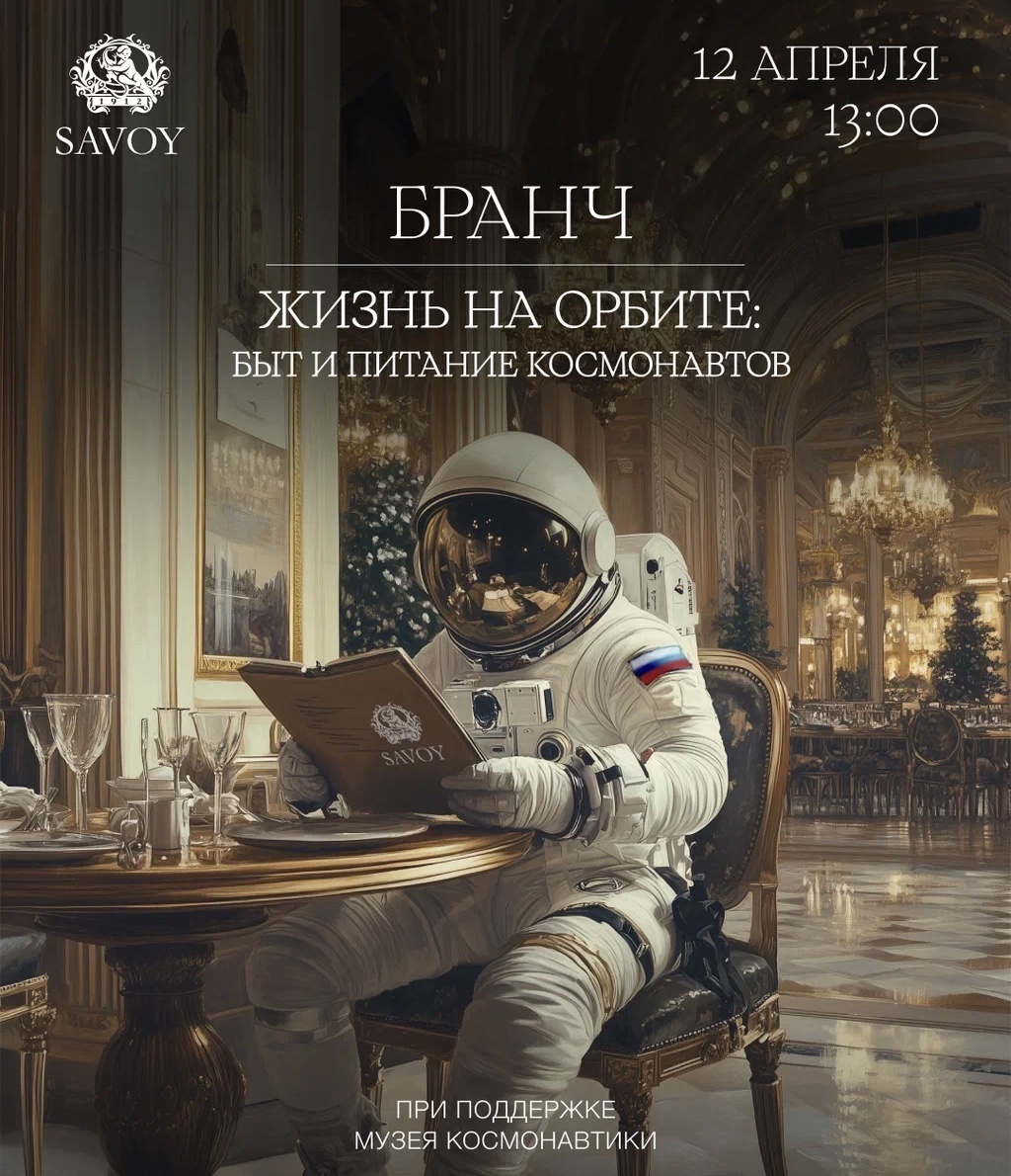 Готовясь отпраздновать День космонавтики, Savoy соответствует масштабу события и при поддержке Музея космонавтики посвящает ему целый бранч. 12 апреля в гостях у ресторана производители космического питания, директор Музея истории шоколада и какао и автор коллекции космических аксессуаров.