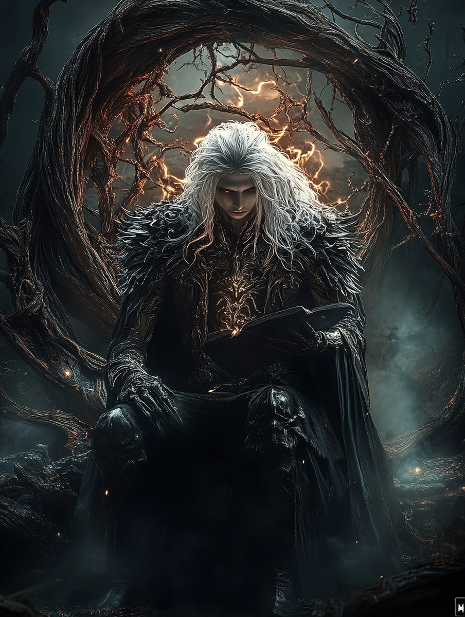 Создано на основе запроса: , , Using these images as inspiration and matching their sleek, clean, ultra sharp art style create a portrait of a winged male elf character in black leather armor, Lavender Ice eyes He is surrounded by swirling dark magic that looks like glowing black smoke , The background of the image is a dark, eerie forest with twisted trees , cinematic lighting, 64K UHD resolution, Topaz Gigapixel clarity, Hyper Photorealistic, Masterpiece, unreal engine