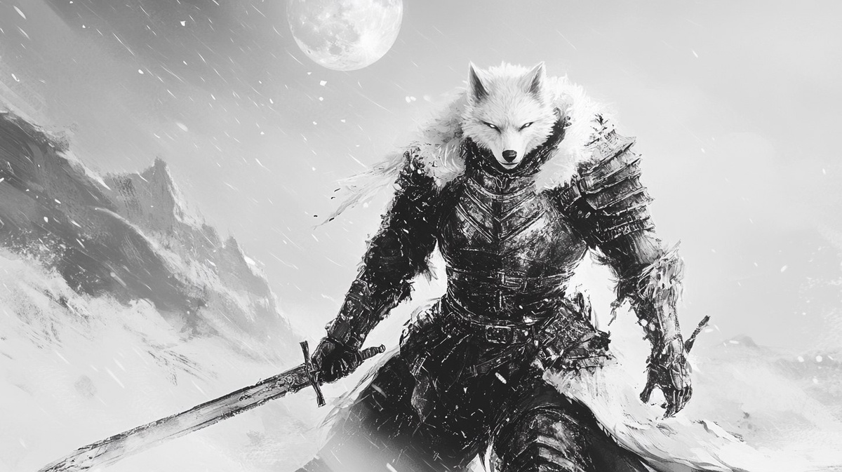 Создано на основе запроса: Fantasy character model sheet, a male wolf warrior with white fur, wearing bits and pieces of worn armor over a scared body, walking along a winter night, a full moon over head, a solitary photo drawn with pen and pencils, black and white manga style, motion, white balancing --- Автоперевод: Фэнтезийный характер модельный лист, мужской воин волка с белым мехом, в кусках и кусочках изношенных доспехов над испуганным телом, прогулка по зимней ночи, полнолуние над головой, одиночная фотография, нарисованная ручкой и карандашами, черно -белый стиль манги, движение, белое балансирование Хорошо выглядит? 🤔 https://dzen.ru/id/65c0c65c86e4f837c27b24d7 #ИИ #AI #нейросеть #midjourney #art