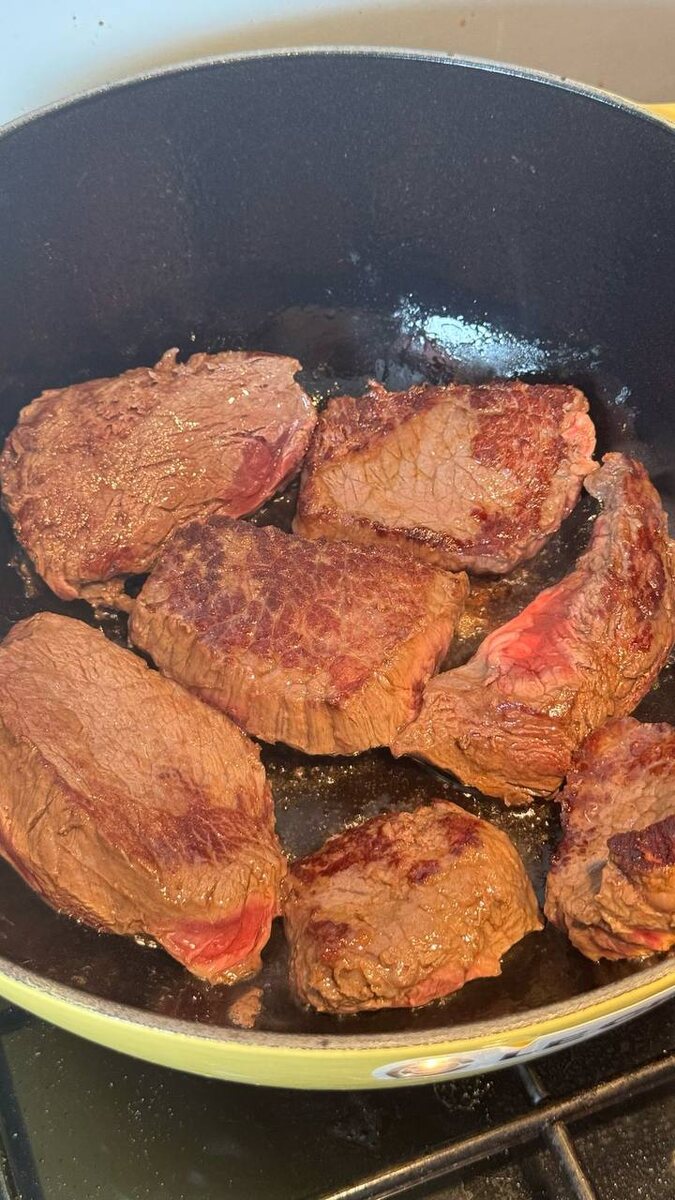 В кастрюле le creuset обжариваем крупные куски мяса с 2х сторон до аппетитной корочки, солим их и заливаем овощной смесью. Добавляем бульон, так чтоб мясо было целиком покрыто. Убавляем огонь до минимума и оставляем томиться на плите на 6-8 часов.