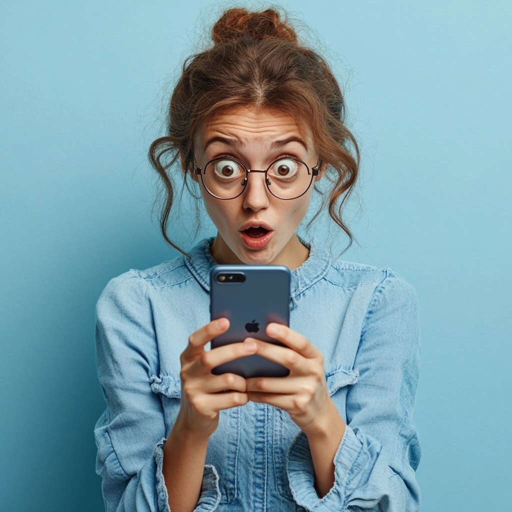 Создано на основе запроса: Embarrassed person looking at a phone with a joke in mind