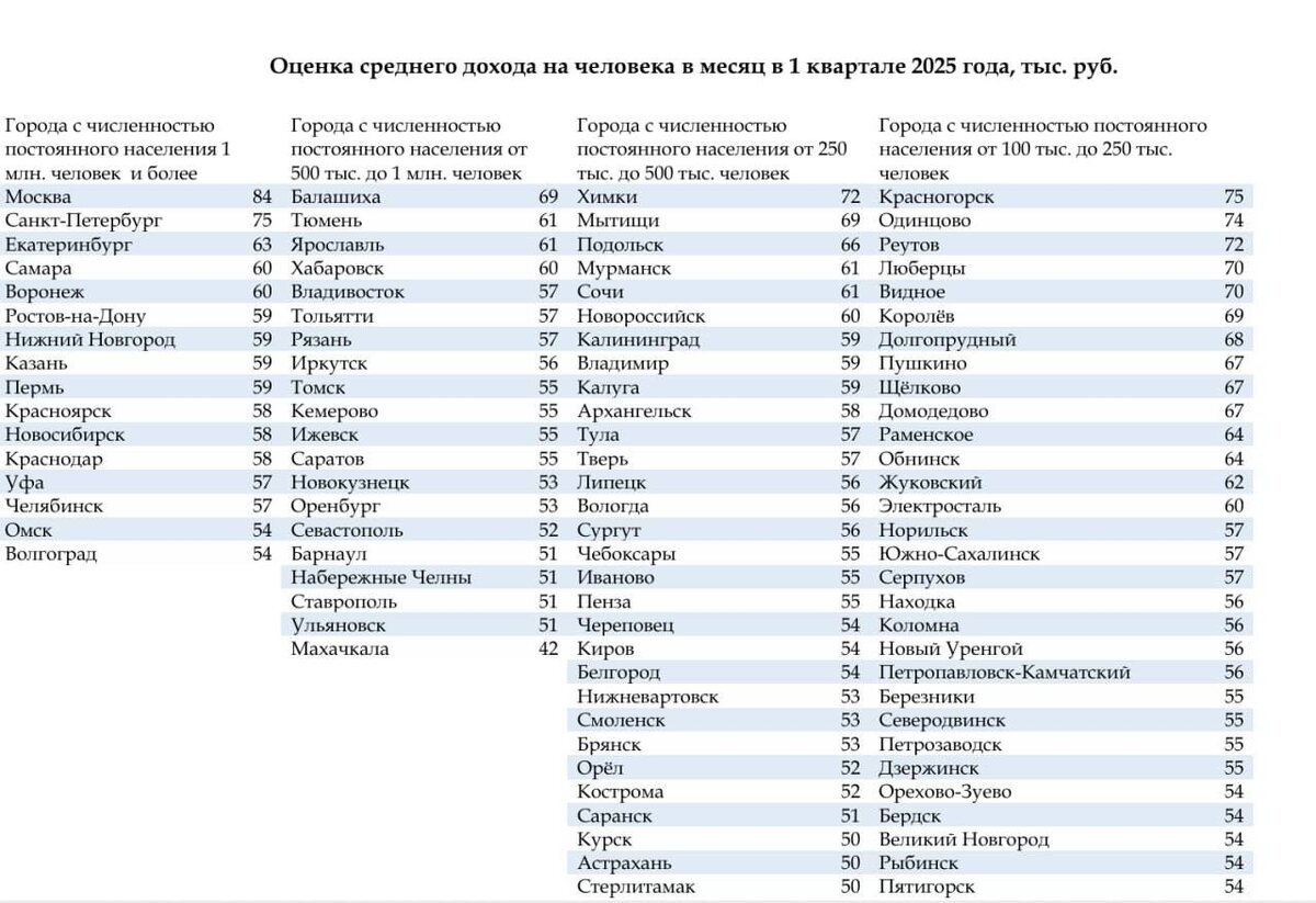 57 тысяч ₽ средний доход серпуховича в месяц Финансовый университет при Правительстве Российской Федерации провел оценку уровня доходов на человека в месяц среди жителей российских городов с населением более 100 тыс. человек в 1 квартале 2025 года, а также оценку роста доходов по сравнению с 1 кварталом 2024 года. Какой у вас? @serpukhov