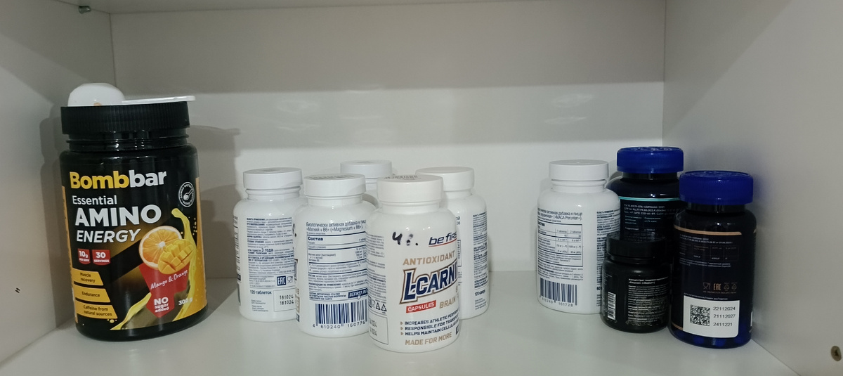 Привет хочу рассказать про свой не большой опыт, как я на протяжении месяца принимал большое количество бадов (спортивных, витаминов, пищевых добавок). И так, вы видите большое количество бабочек, которое я потреблял, на протяжении месяца, не нагружать себя тренировками, так как постоянно был в работе, я чувствовал себя каким то заглотом выпивать по 15-20 таблеток каждый день, но могу сказать что это было достаточно эффективно, у меня получилось убрать нехватку своих витаминов, улучшить настроение, вовремя засыпать, и просыпаться в хорошем расположении духа, получить прибавку к силе и выносливости хотя бы чуть чуть. Проблема заключается в том, что вышло достаточно дорого эти баночки на маркетплейсе, обошлись мне порядка 8к рублей, все равно дешевле чем потреблять достаточнле количество веществ из пищи, в данный период нет возможности для приобретения и чувствую, что снова стал слабым, раздражительным, сбит режим сна, но как таковой зависимости от не ощущаю. Могу похвалить такие доба