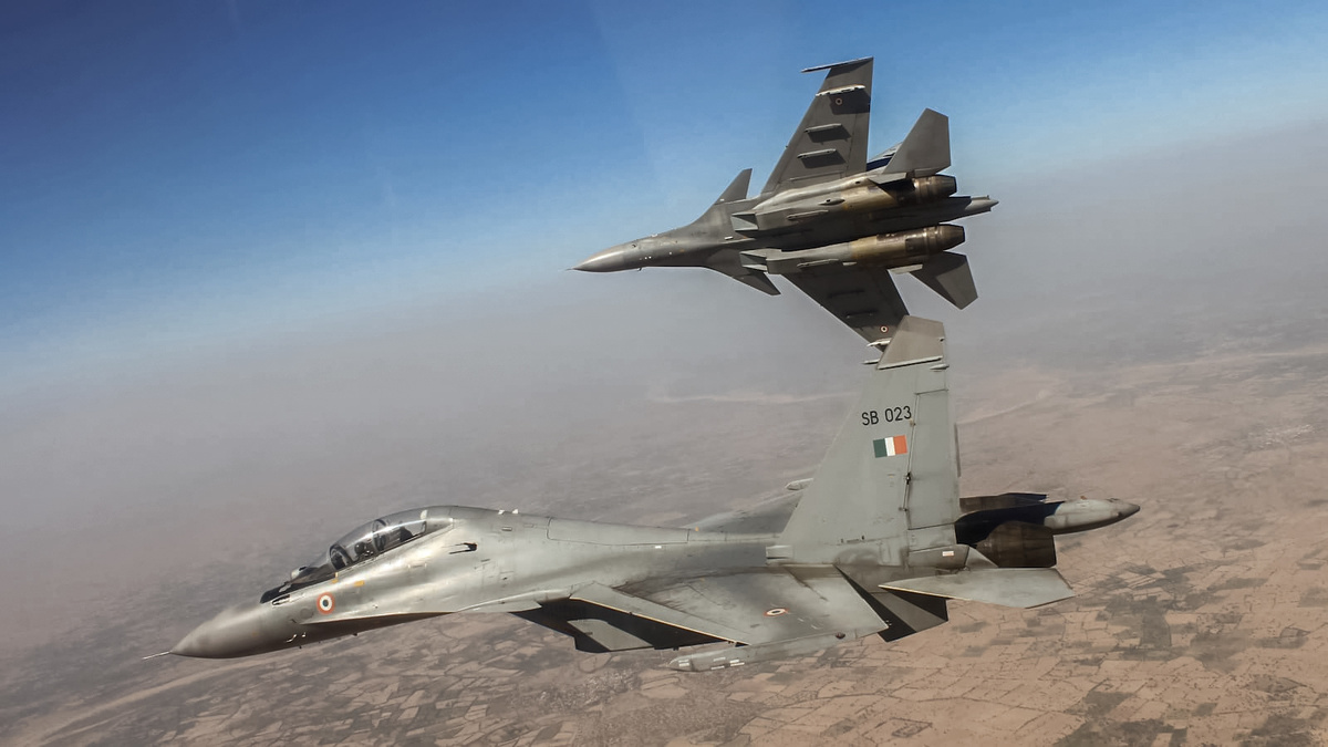 - Единственный оставшийся Су-30 заметался, меняя курс и высоту полета. Такое поведение выглядело необычно для тяжелого истребителя с мощной РЛС и до зубов вооруженного – полеты на боевое патрулирование Су-30МКИ обычно выполняли с четырьмя УР Р-77 и четырьмя УР Р-73. Летчик Су-30МКИ выдал в эфир «Bingo» [малый остаток топлива], после чего покинул район. Самолет оставался в зоне патрулирования всего 25 минут, хотя обычно Су-30МКИ находились в районе патрулирования два часа.