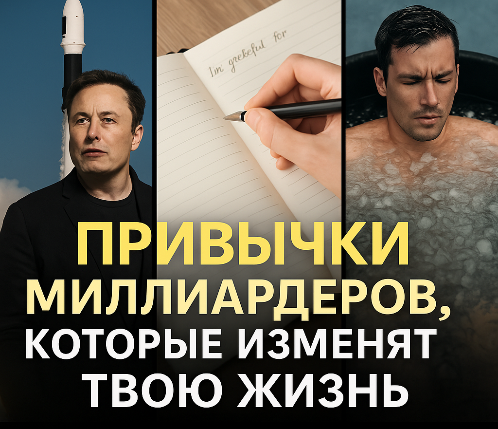 Когда слышишь слово "миллиардер", сразу всплывают яхты, особняки и бизнес-классы. Но настоящая сила — в их ежедневных привычках. Причём некоторые из них реально странные... но работают на все 100%! Давай посмотрим, что они делают такого, что помогает им жить на другом уровне — и что ты можешь внедрить уже сегодня. Чёрная водолазка, джинсы, кроссы — и так каждый день. Почему? "Меньше решений — больше фокуса." Каждое решение — это энергия. Джобс убрал всё лишнее, чтобы думать только о главном. Что взять себе: Создай “капсульный гардероб” или заранее планируй, что наденешь. Мозг скажет спасибо. Каждый вечер она записывает 5 вещей, за которые благодарна. Даже в самые стрессовые дни. Почему это круто: Это настраивает мозг на позитив. А позитивный мозг = продуктивность, уверенность, энергия. Попробуй: Записывай благодарности 21 день — и увидишь, как меняется восприятие жизни. Да-да, Илон планирует день не по часам, а по 5-минуткам. Секунда на перекур? Неа. Всё чётко. Зачем это делать: