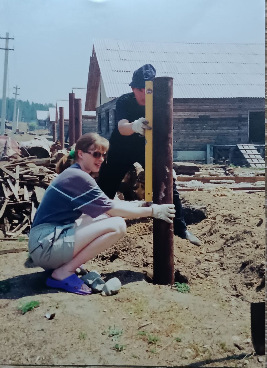 Как-то встретил своего однокурсника, который работал в строительной фирме отделочником, он пригласил меня к себе в бригаду, я согласился. Работал и приобретал новые для себя навыки в строительстве и отделке. Научился работать с гипсокартоном, керамической плиткой, устанавливать окна, немного стал разбираться в электрике. Все приобретённые навыки применял в отделке своего дома. В выходные и в перерывах между заказами обустраивал дом. К концу 2001 года поставил окна, двери, запустил отопление, переехал жить уже в свой дом и перевёз свою будущую жену - Лену.