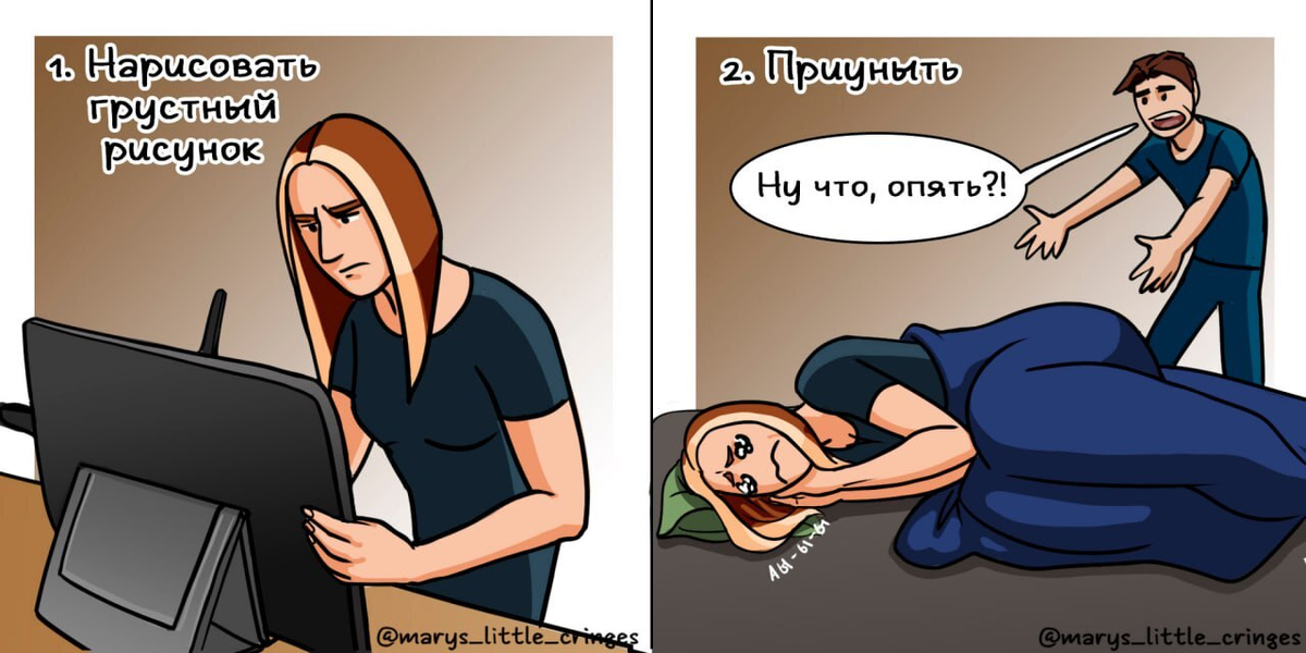 В мире творчества всегда есть место новым именам, чьи работы заслуживают внимания, несмотря на скромную известность. Одна из таких авторов — Мари, талантливая digital-художница, чьи комиксы наполнены самоиронией, жизненными наблюдениями и тонким юмором. Её путь в искусстве начался далеко от мольбертов и графических планшетов: пять лет она посвятила обучению в медицинском вузе, прежде чем осознать, что её призвание — не в белых халатах, а в красках и линиях. Сегодня Мари экспериментирует с иллюстрациями, создавая стикеры, портреты и визуальные концепции для блогеров, параллельно развивая собственные проекты, среди которых комиксы под названием *Mary's Little Cringes*. Рисование сопровождало её с детства — она не помнит себя без карандашей и блокнотов. Хотя формально художественное образование у неё есть (четыре года в школе искусств), сама Мари признаётся, что в юности не ценила академические уроки. «Я была уверена, что мой путь в творчестве особенный, и классические техники мне не приг