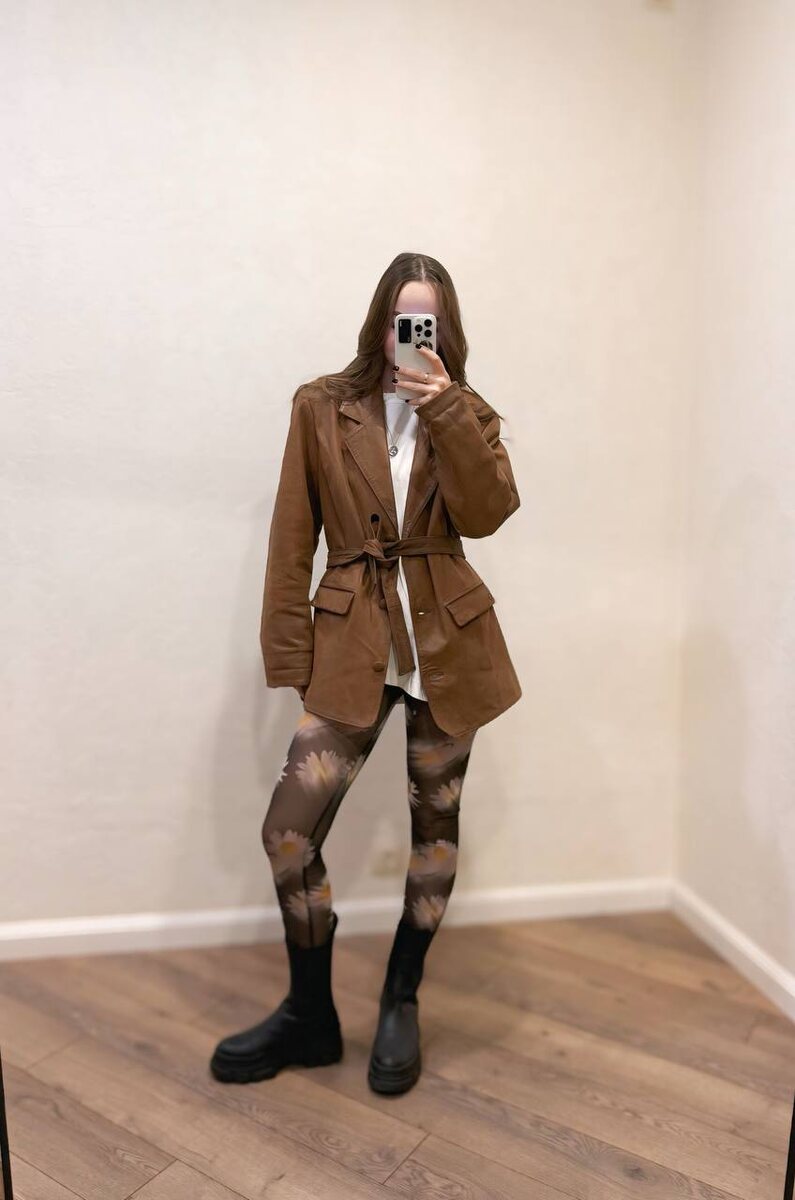 Винтажный коричневый пиджак из 100% кожи Шикарнейший! Состояние: хорошее, есть малейшие потертости от времени, которые придают ему ещё больше шарма Размер не указан, на S сидит оверсайз как на мне, подойдёт от размера XS до L Стоимость: 4000 руб Леггинсы ромашки 🌼 Полупрозрачные, по-этому носить их как колготки, либо под объемный длинный верх Состояние: новой вещи Размер XS-S Стоимость: 1300 руб Доп.фото в комментариях 👇 Связь со мной @AngelinaJolinee #ЛюдиВещиНаличие