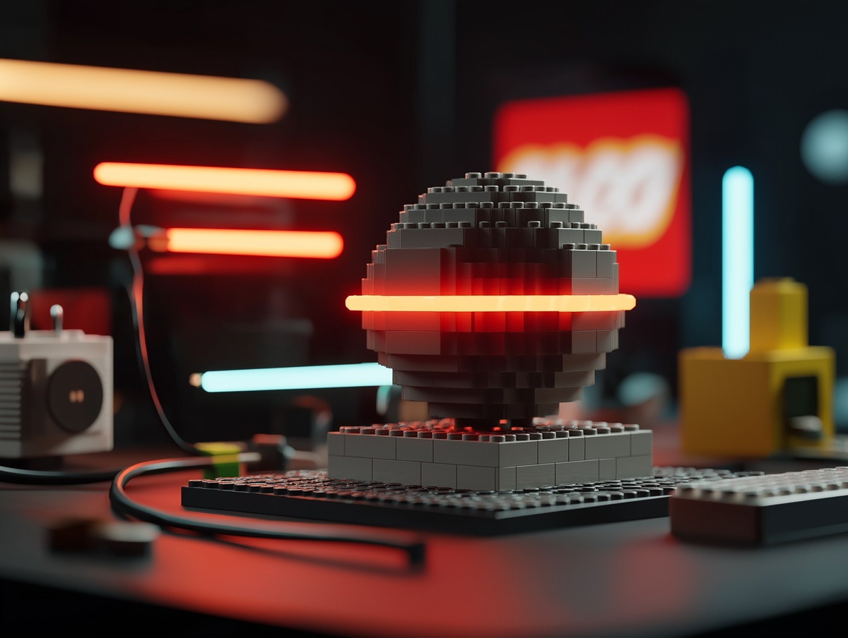 Создано на основе запроса: 3D render nibiru made of legos sitting on a desk, hyper realistic, neon lighting