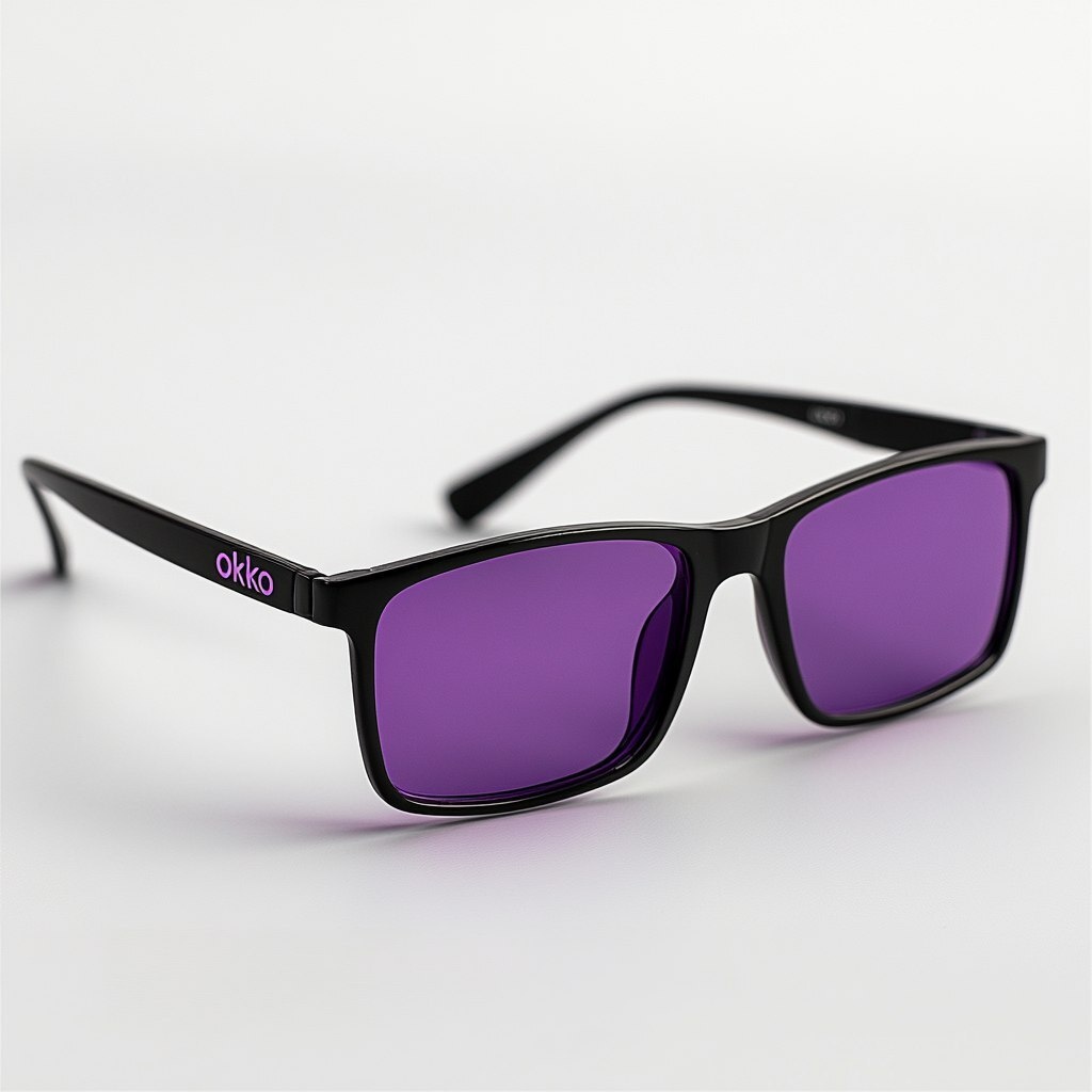 Создано на основе запроса: Rectangular glasses for 3d cinema , lilac with logo "okko" on temple