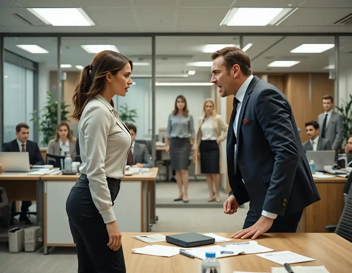 Анна стояла посреди кабинета. Бумаги у ног. Тишина. Лица сотрудников — кто в шоке, кто в восхищении.