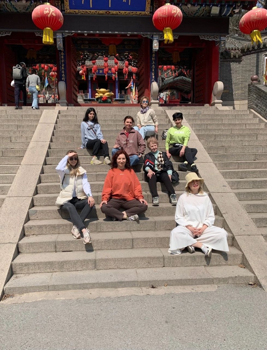Утро началось с практики цигун у древнего камня с витиеватыми иероглифами. Проходящие мимо китайцы с улыбкой наблюдали за нашими плавными движениями.