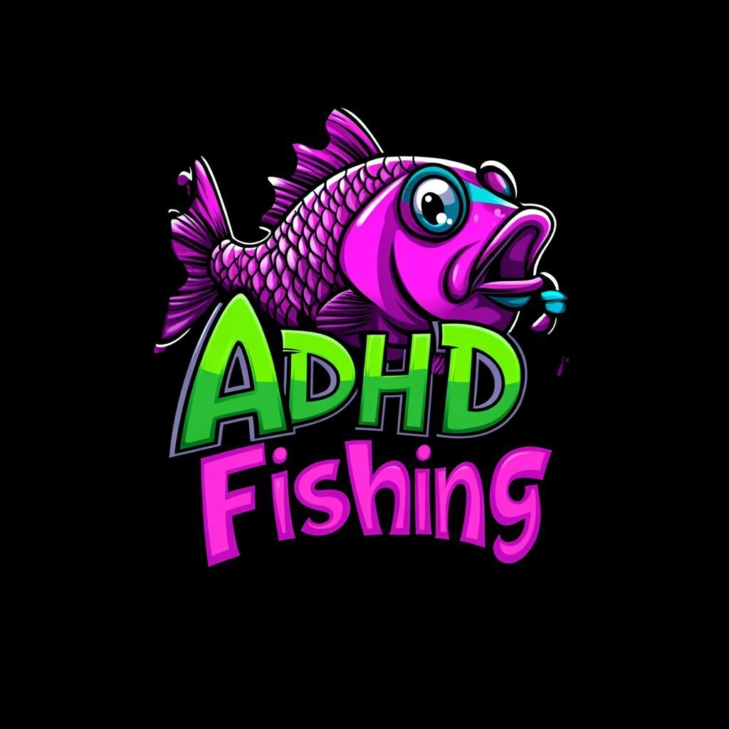Создано на основе запроса: Create a Logo that reads "ADHD Fishing" pink, Green and Purple color theme