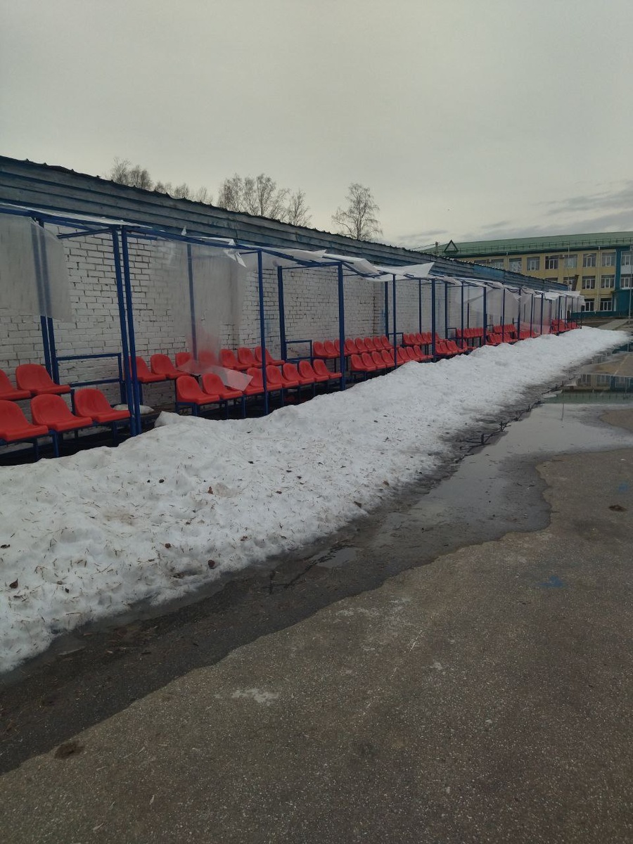 Народные корреспонденты из Подгорного делятся фото о том, как пережил первую зиму только что отремонтированный стадион