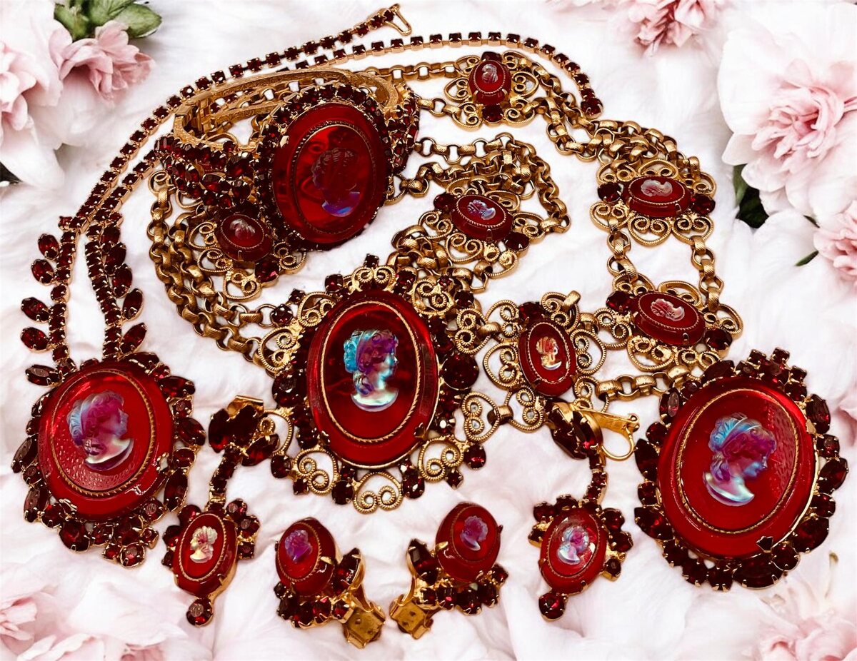 Более подробно я писала об этом сете в статье - "В продаже колье, которого нет. Собственное расследование. Два варианта броши". Ссылка на нее будет внизу.