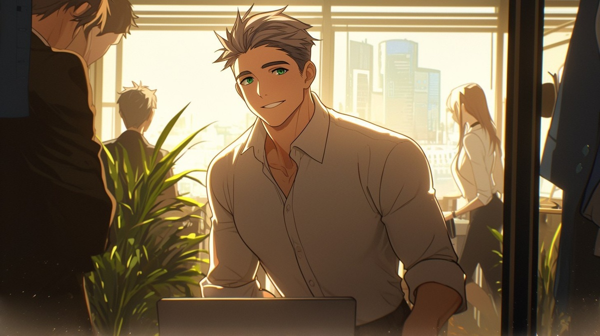 Создано на основе запроса: Wide shot of a man entering a seminar room. He stands in the doorway and steps slightly inside. He is wearing a charcoal gray suit, crisp white shirt, and no tie. His expression is calm. Inside the seminar room, some people glance toward the entrance. The lighting coming through the side windows is soft and natural, creating a professional yet welcoming atmosphere. anime style, --- Автоперевод: Широкий снимок человека, входящего в комнату семинара. Отлично выглядит? 🤔 https://dzen.ru/id/65c0c65c86e4f837c27b24d7 #ИИ #AI #нейросеть #midjourney #art