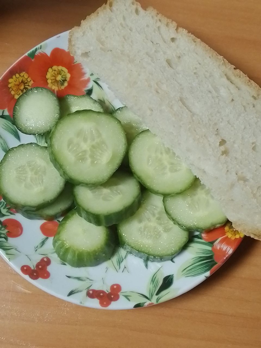 Взяла на обед себе огурчик, плюс с собой был домашний хлебушек.