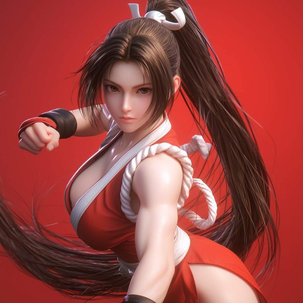 Создано на основе запроса: The King of Fighters '97, Mai Shiranui, in a fighting stance, full body, in 3D, realistic