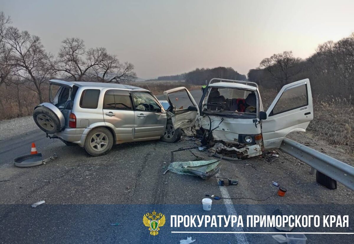 Дорожно-транспортное происшествие, в котором пострадали пять человек, включая двухлетнего ребенка, произошло на 419 км автодороги А-370 «Уссури», на участке «Хабаровск — Владивосток» недалеко от Лесозаводска. По предварительным данным, 43-летний водитель автомобиля Nissan Vanette, двигаясь в сторону Хабаровска, выехал на полосу встречного движения и столкнулся с автомобилем Suzuki Escudo. В результате аварии пять человек получили травмы. На место происшествия оперативно прибыли сотрудники полиции и скорой помощи. Все обстоятельства аварии устанавливаются. По результатам проверки будет принято соответствующее решение. Прокуратура поставила на контроль установление обстоятельств ДТП. Фото: прокуратура Приморья 🟥Подписаться | Предложить новость