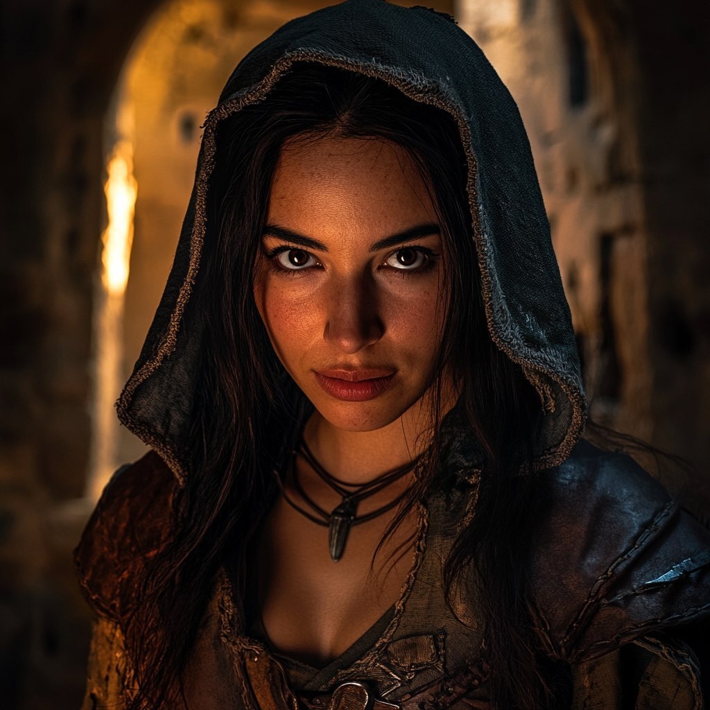 Создано на основе запроса: a photo of an exotic heavy set character. She has a goofy smile. She poses dramatically. She is dressed in medieval fantasy gear including a hooded cloak. The background is an ancient dungeon. Dramatic lighting. --- Автоперевод: Фотография экзотического персонажа с тяжелым набором. Круто получилось? 🤔 https://dzen.ru/id/65c0c65c86e4f837c27b24d7 #ИИ #AI #нейросеть #midjourney #art