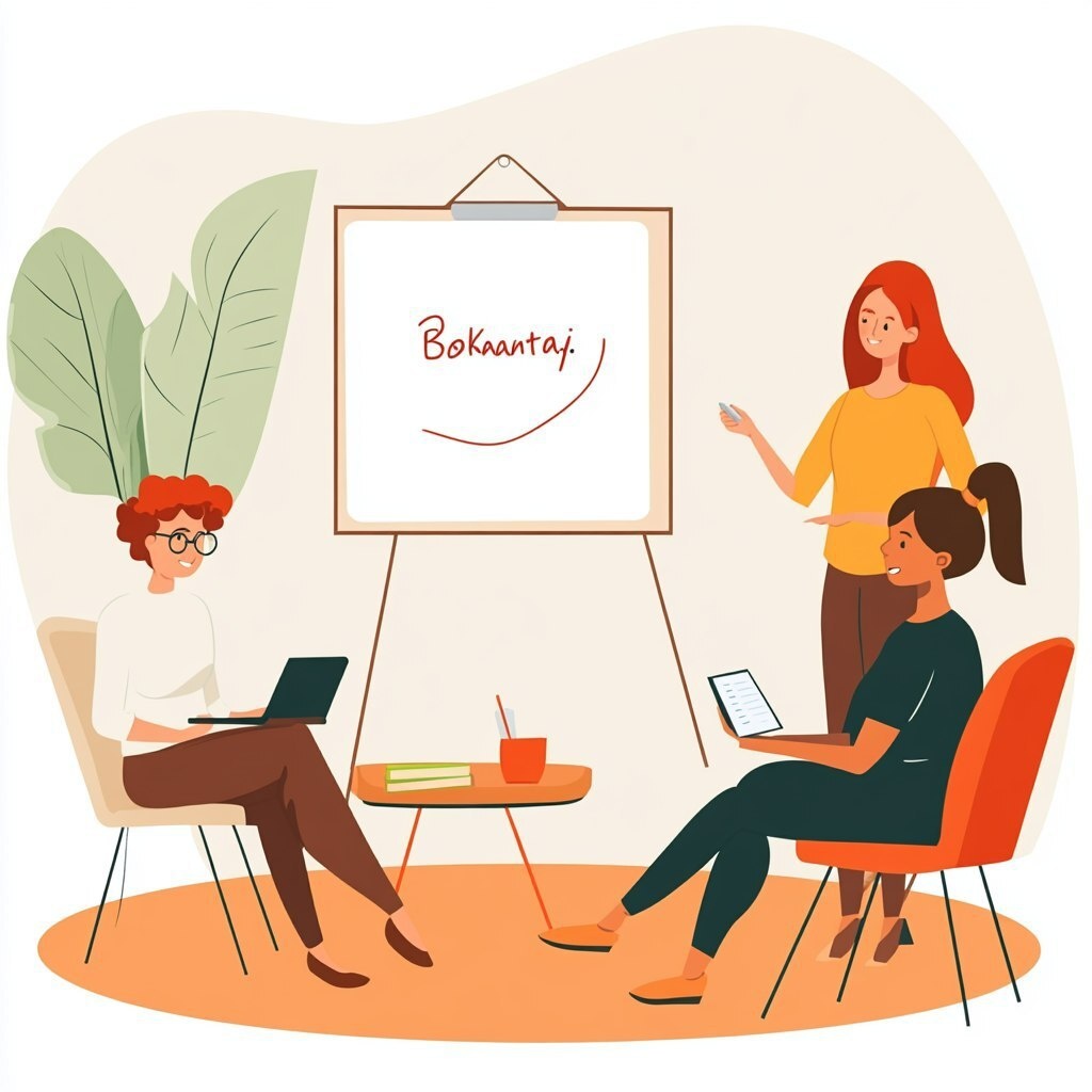 Создано на основе запроса: illustrate a nice icône representingnteractive language course, where the mixed-skinned participants are seated in a small living room. There's a whiteboard hanging on the wall. The instructor is a brown-skinned end red hairfemale standing and writings the word 'Bokantaj' on the whiteboard,by a graphic designer, drawing, symbol,abstract, minimalis --- Автоперевод: Иллюстрируйте хороший курс Icône, представляющего языковой, где участники смешанной кожи сидят в маленькой гостиной. Как тебе такое изображение? 🤔 https://dzen.ru/id/65c0c65c86e4f837c27b24d7 #ИИ #AI #нейросеть #midjourney #art