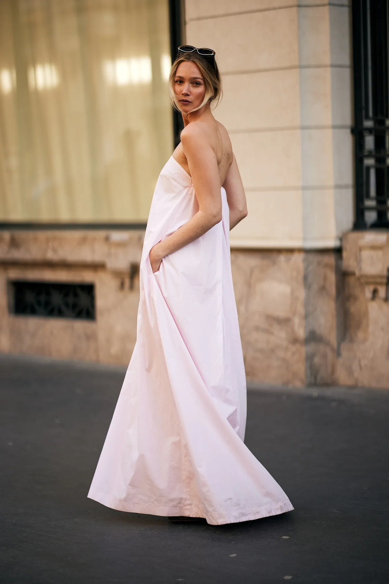 Когда наступает лето и температура повышается, вы ищете что-то "прохладное и легкое". Помимо выбора светлых цветов или белого, который способен отражать солнечные лучи, одно из самых естественных решений — льняное платье. Выберите его в миди-длине и с широким подолом.