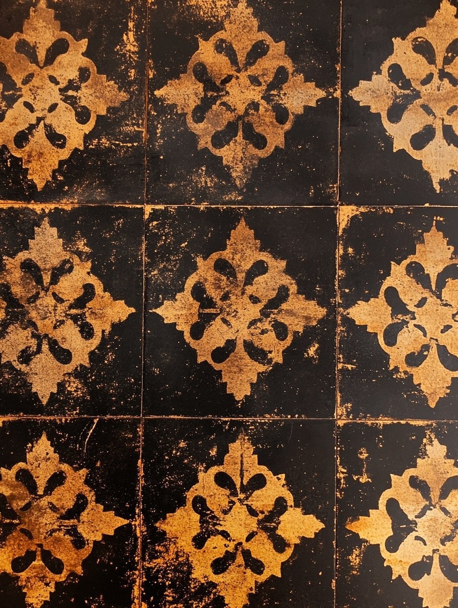 Создано на основе запроса: hand painted and barely visible visible golden brown colour azulejo style patterns on a dark brown textured