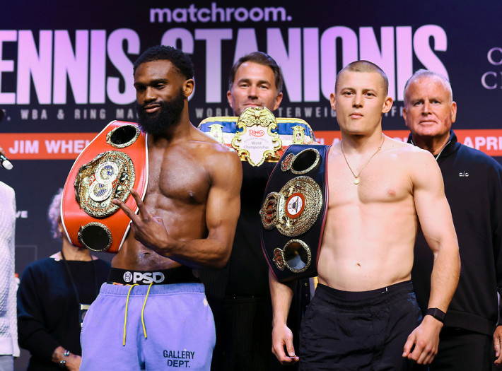 Чемпион IBF Джейрон Эннис и чемпион WBA Эймантас Станионис успешно прошли взвешивание перед объединительным поединком в полусреднем весе, на кону в котором также будет вакантный титул чемпиона The Ring. Вечер бокса на DAZN пройдет 12 апреля в американском Атлантик-Сити. 27-летний американец Джейрон Эннис, которому давно прочат звание лидера полусреднего веса, показал на весах 66,4 кг, а вес литовского боксера Эймантаса Станиониса составил 66,6 кг. Откроет главный кард этого вечера бокса бой обязательного претендента на титул WBA в полусреднем весе Шахрама Гиясова против аргентинца Франко Максимилиано Окампо (17-2, 8 КО). 31-летний олимпийский призер Гиясов показал на весах 67,6 кг, а 28-летний аргентинец Окампо — 69,4 кг. Победа в этом поединке сохранит за Гиясовым позицию обязательного претендента, и он должен будет встретиться с победителем боя между Эннисом и Станионисом.