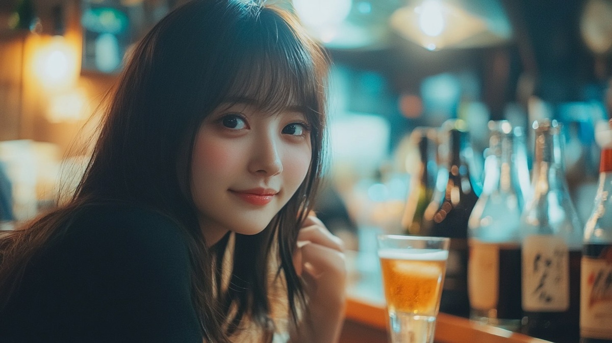 Создано на основе запроса: Young Japanese cute ladies are relaxing, chatting, and enjoying drinking at jazz bar