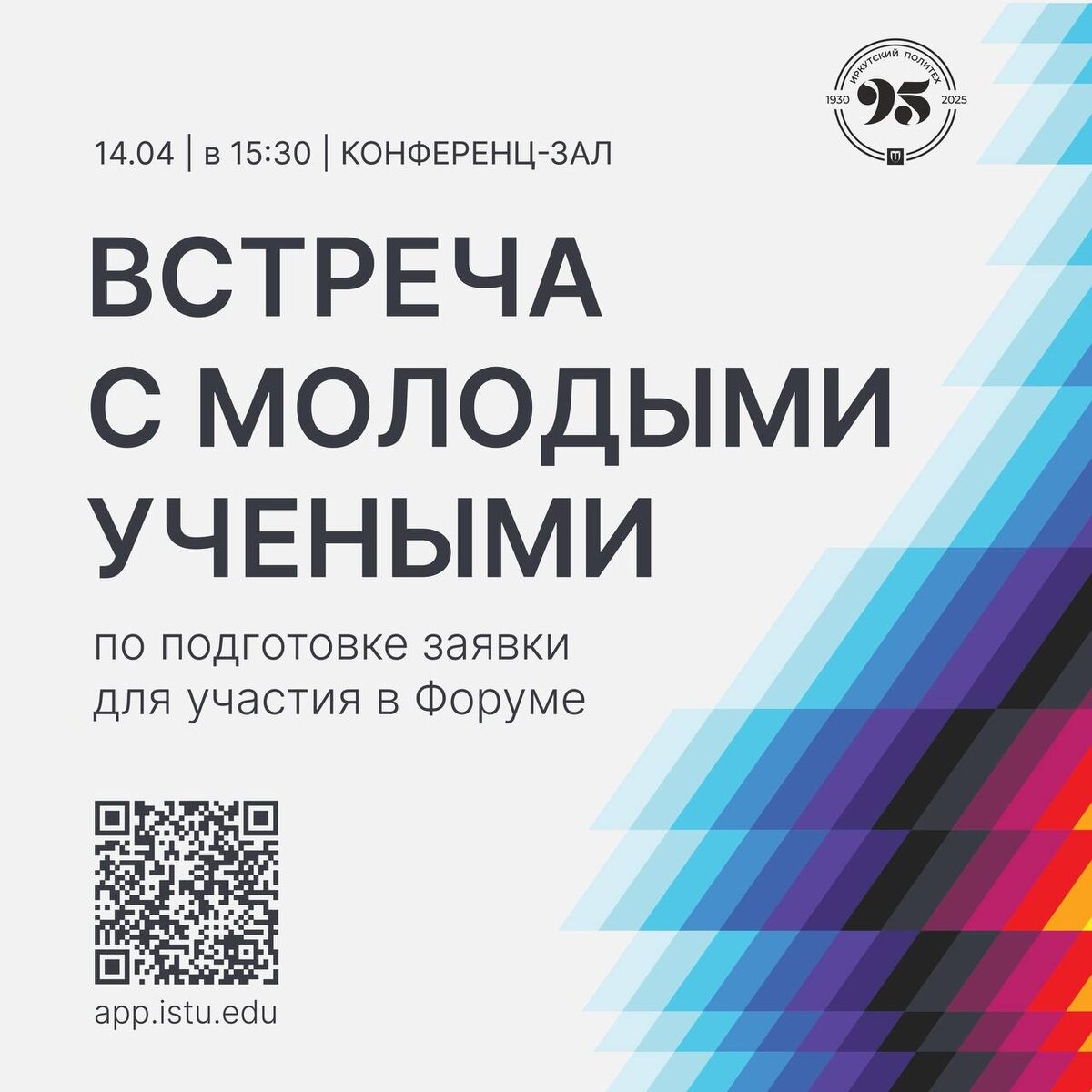 Студенты и молодые ученые, возможность для вас! 🔥 Объявлен прием заявок на междисциплинарный форум «Наука будущего — наука молодых», который пройдет в этом году в Самаре! Это уникальная возможность для вас погрузиться в мир науки, обменяться идеями и найти единомышленников. Не упустите шанс встретиться с молодыми учеными ИРНИТУ и узнать, как подавать заявки для участия в форуме! Это ваш шанс внести свой вклад в науку будущего и начать путь к успешной карьере. 📍 Конференц-зал 🗓 14.04 (понедельник) ⏳ 15:30 Регистрация Источник: Наука в ИРНИТУ