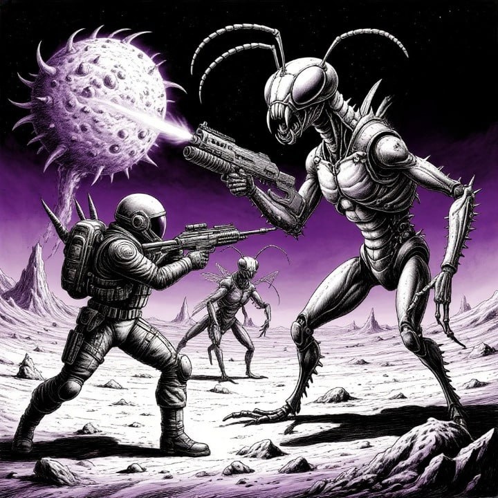 Вспомнил, что сегодня День Космонавтики. В честь этого праздника - иллюстрация в стиле космической боевой фантастики 80-90 гг.