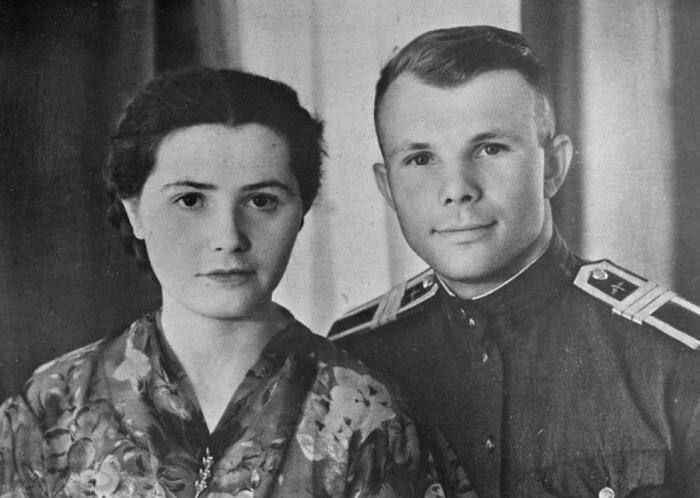 Юрий Гагарин с невестой Валентиной Горячевой, 1957 год.
