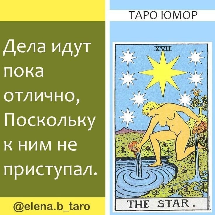 «ЗВЕЗДА» В СОЧЕТАНИИ СО СТАРШИМИ АРКАНАМИ ✔️Звезда + Шут (XVII + 0) Вера в свою звезду. Только Дурак мог поверить. Звездный дурак. Ребенок не решил куда поступать. Ничего не хочу делать. Нежелание идти вперед. Диагноз непонятный. Сумасшествие. ✔️Звезда + Маг (XVII + I) Яркая идея. Удачное время для начинаний. Известия, которые обрадуют. Вам ответят взаимностью. ✔️Звезда + Верховная Жрица (XVII + II) Ситуация разрешится так, как подсказывает вам ваша интуиция. Высший разум, спокойствие и уверенность в будущем. Возвращение того, что было потеряно. ✔️Звезда + Императрица (XVII + III) Ваша цель близка. Усилия в нужном направлении. Результаты не заставят себя ждать. Счастливые события. Достойные результаты. ✔️Звезда + Император (XVII + IV) Руководителю будет сопутствовать удача. Награда. Надежда на новую встречу. Новое знакомство. Помощь влиятельного человека. Звезда - поиск вдали, за рубежом. Работа за границей. Есть надежда на исполнение желания. Матер