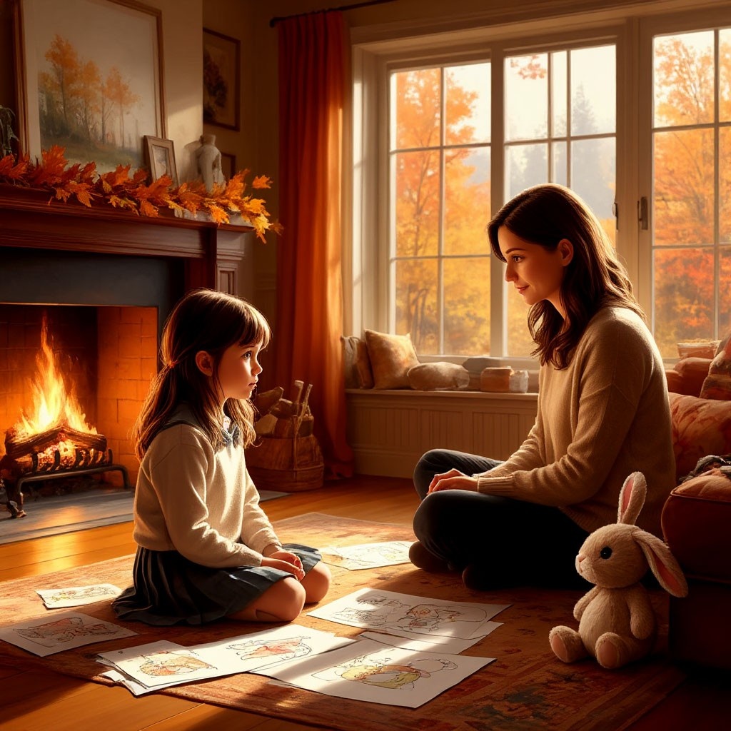 Лена вошла, осторожно ступая по ковру, словно боялась потревожить тишину. Села в кресло у окна, обняв зайца, и замерла. Не тронула чай, не посмотрела на игрушки. Только смотрела. На стены. На камин. На них.