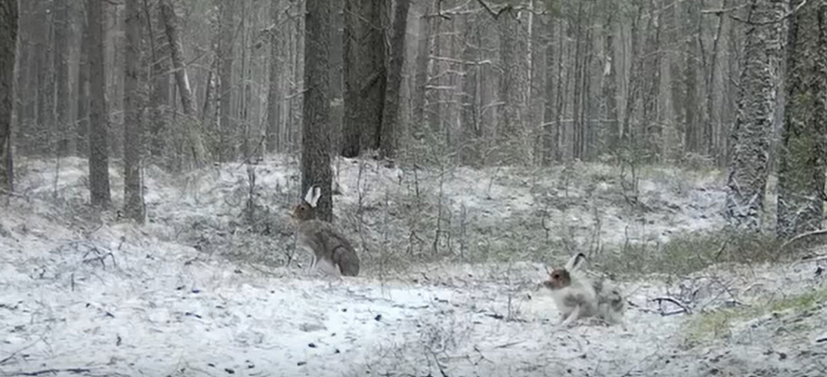 В фотоловушку Нижне-Свирского заповедника попали линяющие зайцы