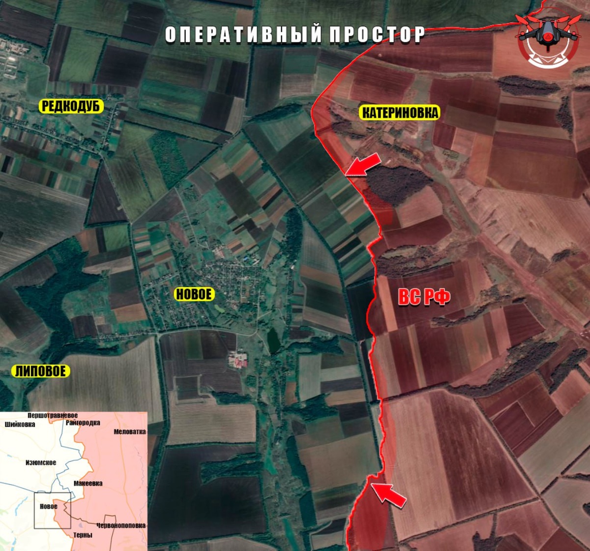 🇷🇺 На Рубцовском направлении ВС РФ продолжают наступление в направлении н.п. Новое, продвигаясь все ближе к населенному пункту. 🔺Противник из состава 66 омбр ВСУ исчерпывает свой потенциал в живой силе, что сказывается на морально-психологическом состоянии обороняющихся боевиков. 🔻 За сутки на данном направлении потери противника составили до 60 боевиков, а также уничтожены: ▪️одно артиллерийское орудие ▪️два миномета ▪️одна станция РЭБ ▪️две роботизированные платформы ▪️два автомобиля ▪️один склад БК Оперативный простор Карта носит ориентировочный характер и может быть скорректирована по мере поступления новых данных.