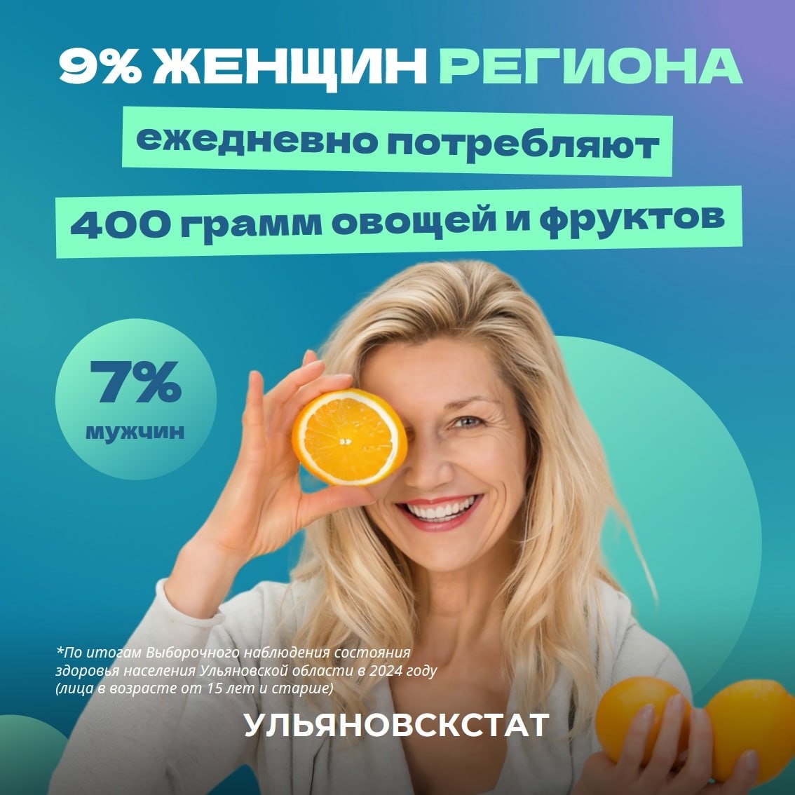Около 90% ульяновцев не соблюдают нормы потребления овощей и фруктов В Ульяновской области только 9% женщин и 7% мужчин ежедневно употребляют рекомендованные 400 граммов овощей и фруктов. Именно столько рекомендует съедать Всемирная организация здравоохранения. Эти данные были получены в результате выборочного наблюдения состояния здоровья населения в 2024 году среди людей старше 15 лет. Согласно рекомендациям ВОЗ, ежедневное потребление растительной пищи составляет 400 граммов, что эквивалентно пяти порциям. Это может включать два небольших салата из овощей, порцию гарнира и два фрукта среднего размера. Фото: Ульяновскстат Подпишись на «Ульяновск сегодня»