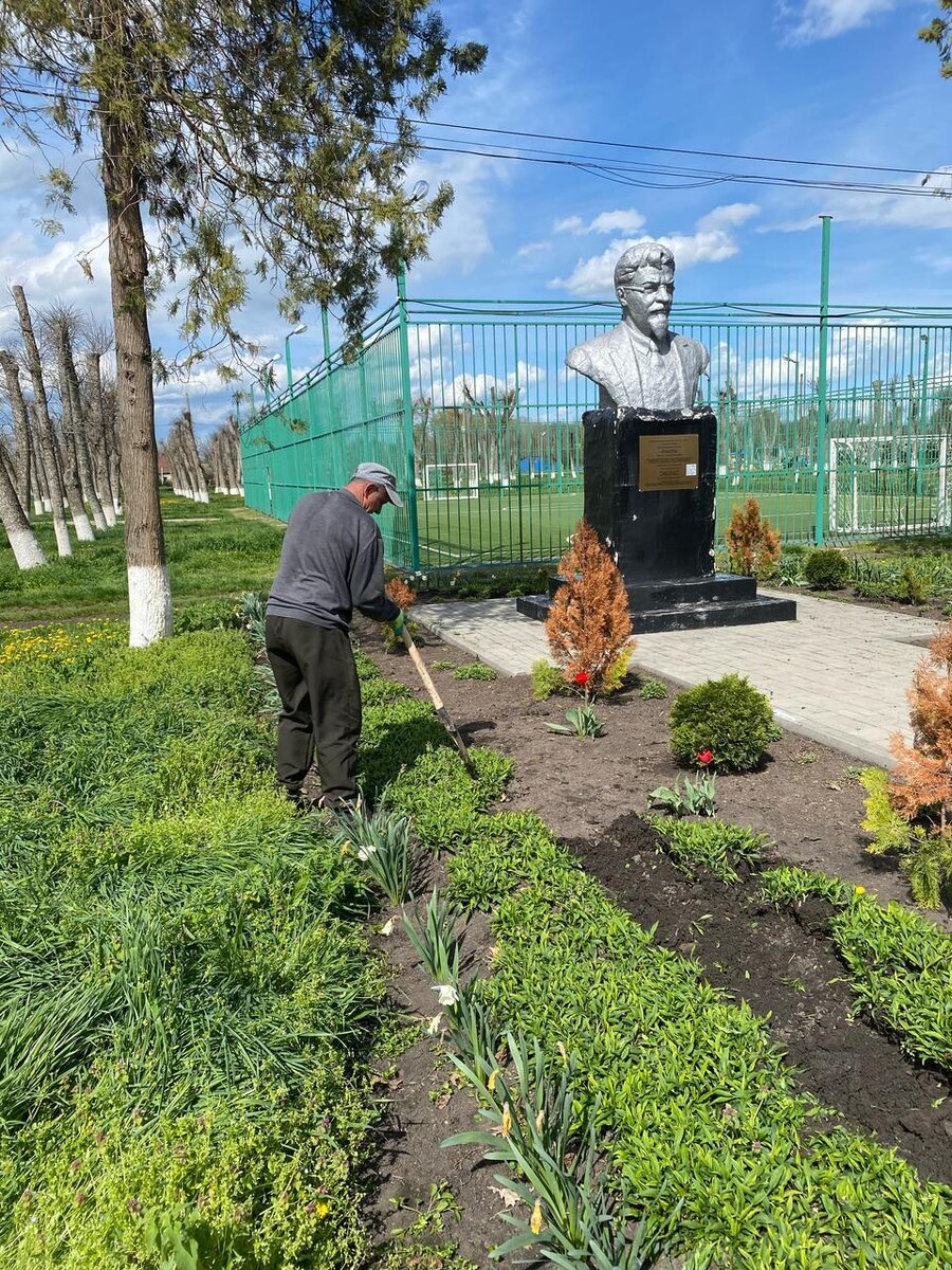 11 апреля работниками администрации был проведён очередной субботник, на котором были высажены многолетние цветы в парковой зоне с. Сергиевское и памятника культурного наследия Республики Адыгея М. И. Калинина.