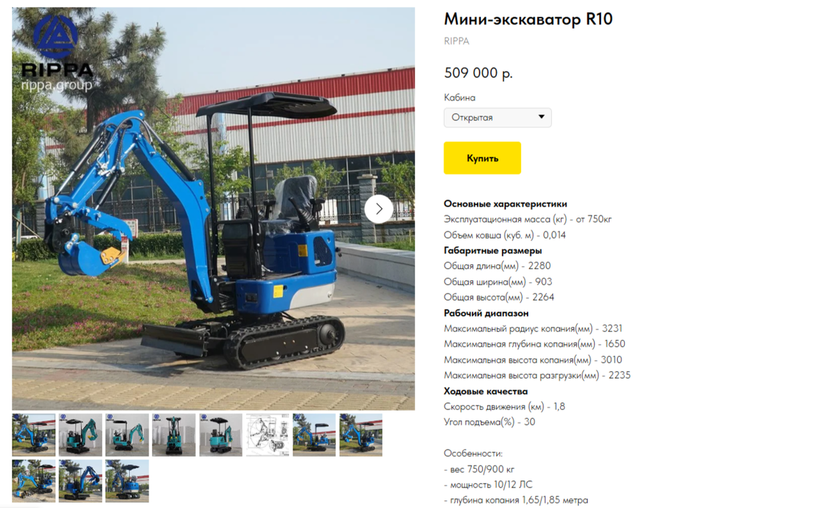Сейчас, в 2025 году, для мини-экскаваторов важны такие ключевые параметры, как глубина копания, которая определяет спектр выполняемых работ и вес техники — влияет на устойчивость и давление на грунт. А вообщем и целом, баланс этих параметров — оптимальное сочетание глубины и веса для конкретных задач. Глубина копания — один из ключевых параметров, определяющих функциональность мини-экскаватора. От этого показателя зависит, какие работы сможет выполнять техника: Мини-экскаваторы Rippa, такие как модели R10, R15 и R18, оснащены стрелами с возможностью регулировки, что позволяет увеличивать глубину копания без необходимости перехода на более крупную технику. Например, телескопические механизмы и удлиненные стрелы делают эти модели незаменимыми для работы в ограниченном пространстве. Вес техники напрямую связан с ее устойчивостью и давлением на грунт. Мини-экскаваторы Rippa представлены в разных весовых категориях, каждая из которых подходит для определенных условий: Модель Rippa R10 - 0,9