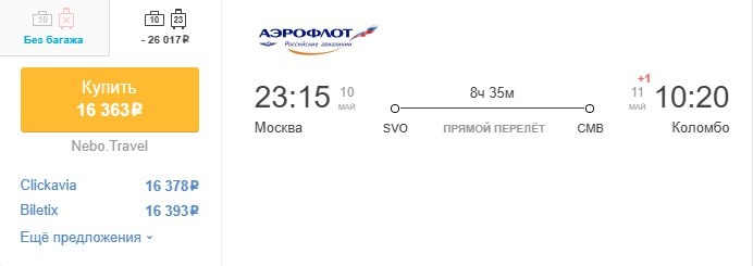 ✈️Москва - Коломбо (Шри-Ланка), прямой рейс, с багажом за 16400 рублей