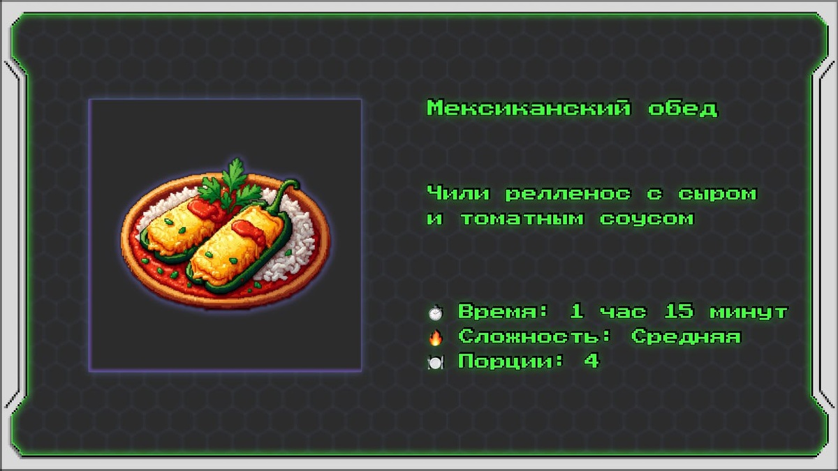 Этот рецепт представляет собой классическое мексиканское блюдо — чили релленос, где перец poblano фаршируется сыром, покрывается тестом и обжаривается. Это традиционное блюдо подается с ароматным томатным соусом и идеально подходит для сытного обеда.