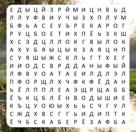 ☀️ Уважаемые подписчики! Сегодня мы подготовили для вас филворд, тема которого (Природа и животные), состоящий из 15 слов. Каждый желающий может участвовать в данном интерактиве, отправив свой вариант слов в комментарии к этому посту (каждое слово - отдельный комментарий).