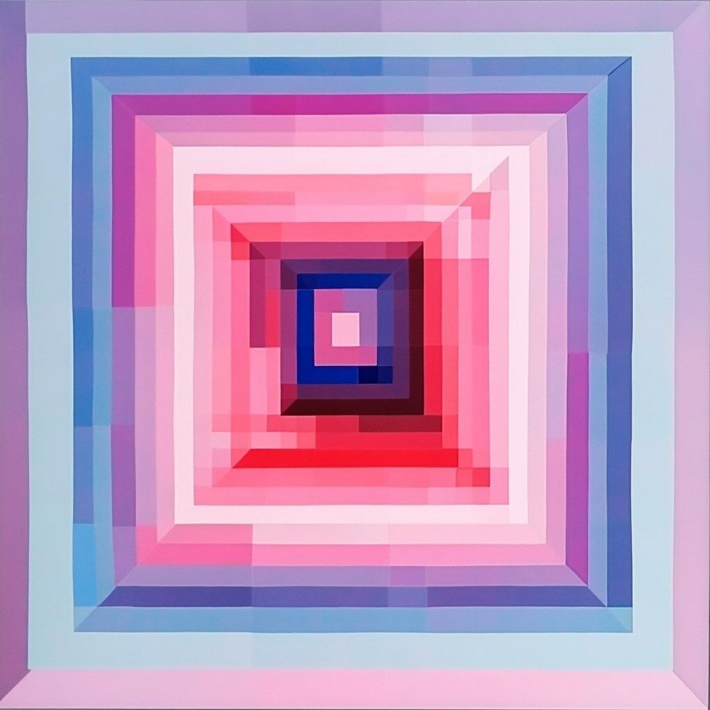 Создано на основе запроса: graphic data driven art that created kinetic visuals of centered squares rafael rozendaal, pastel pinks and sherberts, and blues and purples